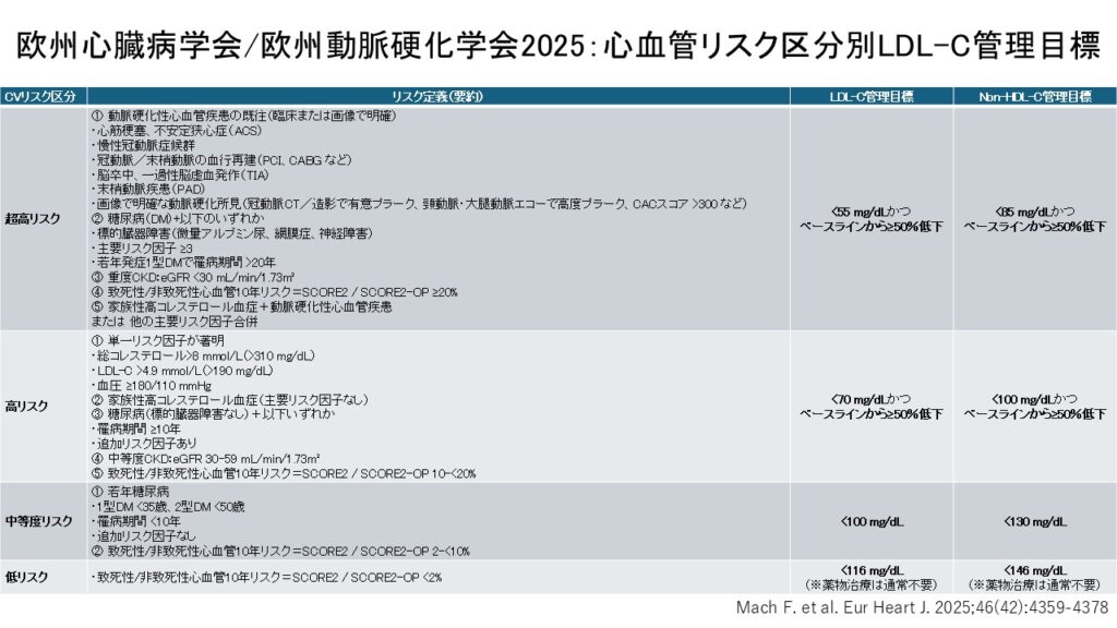 👉 食事・運動に加え、お薬(高強度スタチン±エゼチミブ/PCSK9阻害薬)をしっかり使う治療が必要なことが多い