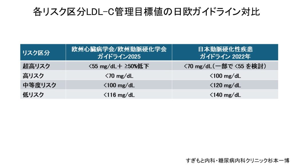 👉 日本のガイドラインは、欧州よりも目標がやや緩やか