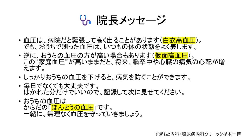 外来血圧だけではリスクは分からない。👉 血圧は“日常の値”で評価すべき
