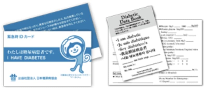 低血糖昏睡や交通事故などの緊急時に、本人が糖尿病であることや連絡先が分かります。